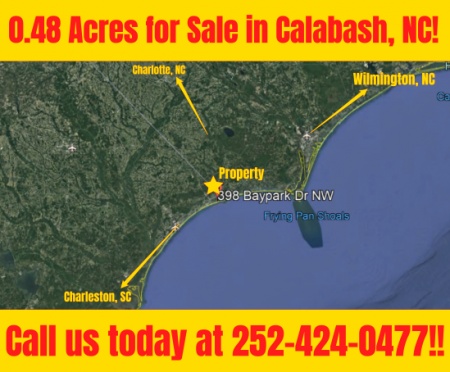 Price just reduced!! Own 0.48 acres in Calabash, NC, originally selling for $18,997, now just $15,997!!! That’s way below the market value of $35,000! This flat, wooded land at 398 Baypark Dr NW in Calabash, NC, could be your beachside oasis. Nestled in a beautifully maintained neighborhood, this property has the best of both worlds: neighbors down the road but room to breathe and stretch your legs around your land. Buy the land that YOU deserve for just $15,997!! Save money on your dream land today! Call us today at 252-424-0477!
