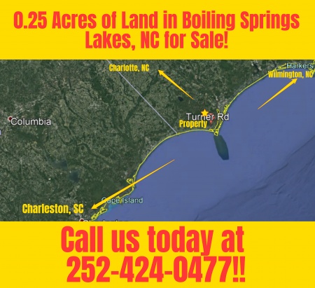 Price just reduced!!! Own 0.25 acres of land in Boiling Springs Lakes, NC, originally selling for $7,497, now just $4,297!! This property on Turner Rd in Boiling Springs Lakes, NC, is nestled in a cute neighborhood filled with cozy homes. The flat, wooded, untouched land near Patricia Lake has plenty of space to build a single-family home. Buy the land that YOU deserve for just $4,297 and build the dream home you’ve always wanted!! Call us today at 252-424-0477!